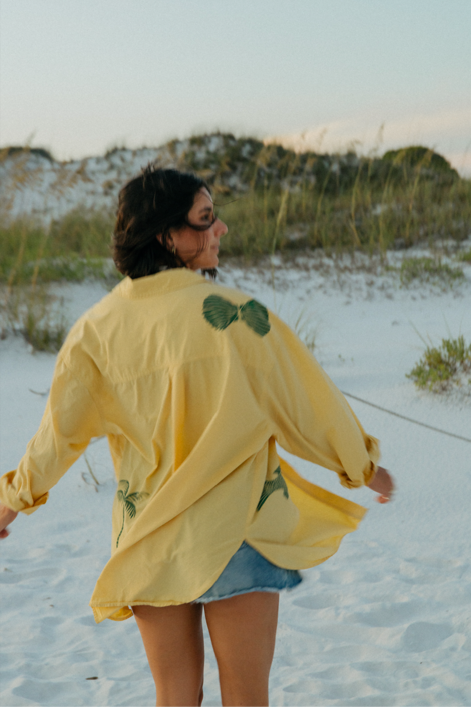 Our block prints are made using acrylic-based fabric ink that has been heat-set for durability. Washing your garment according to the care instructions on its tag is perfectly fine. To extend the life of your piece, we recommend turning it inside out, washing on cold, and either tumble drying on low or laying flat/air drying.